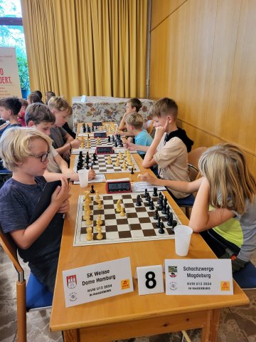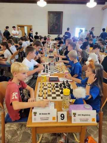 In der u14 haben die Schachzwerge Magdeburg in der sechsten Runde knapp gegen den Tabellenführer aus Hamburg verloren und sind damit aus den Qualifikationsplätzen gerutscht. Mit einem Sieg morgen ist die Chance zur Qualifikation aber durchaus noch da. Nach den Derbys in der u12 gab es heute nun das u14 Derby zwischen dem USC Magdeburg und dem SK Dessau 93, welches friedlich 2-2 endete. Mit dem gleichen Ergebnis konnten beide Teams auch in der ersten Runde Zählbares einfahren.